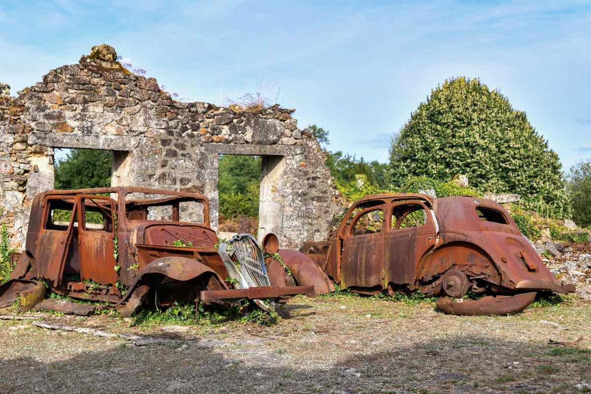 10 Haziran 1944’te Oradour-sur-Glane köyü II. Dünya Savaşı‘nın en kötü katliamlarından birine sahne oldu. Kasabanın Fransız direnişine gösterdiği desteğin intikamı olarak toplanan Nazi Waffen SS müfrezesi köydeki 642 Fransız sivili öldürdü ve evleri ateşe verdi. Erkekler ahırlara götürülüp makineli tüfekle vurulurken kadınlar ve çocuklar kiliseye kilitlenip patlayıcı ve yangın bombasıyla öldürüldü. Sadece birkaç insan ölü taklidi yapıp ormana kaçarak hayatta kaldı.